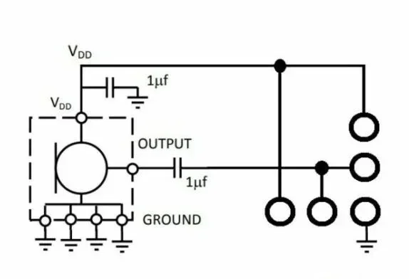 This is an absolute tiny Knowles SPV0142LR5H-1 microphone element with two 1uF capacitors on a 0.6mm thik FR4 PCB